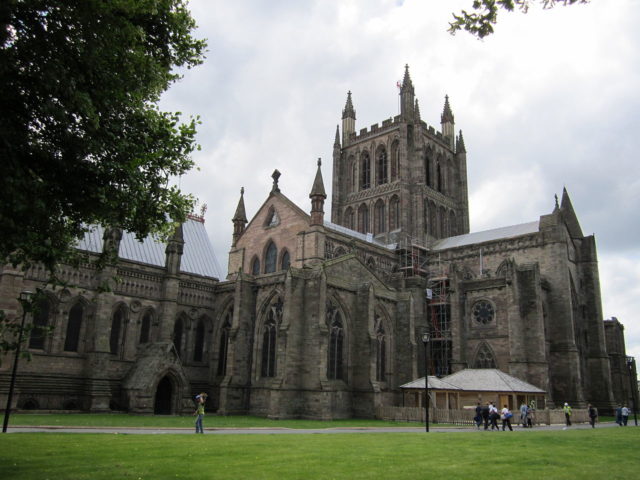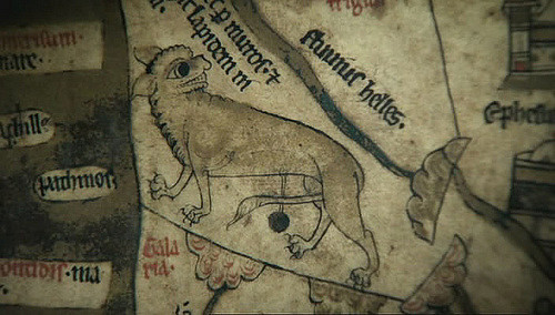 The map had been laid beneath the floor of Bishop Audley’s Chantry during the troubled times of the Interregnum. In 1855, the map was repaired at the British Museum. During the Second World War, it was moved elsewhere for safe keeping, and in 1964 it was returned to the collection of the Hereford Cathedral.