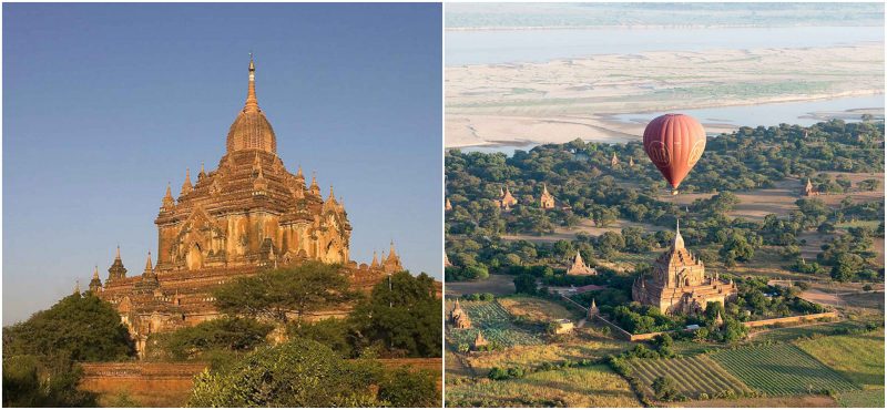 The city of Bagan covers more than 32 square miles (80 square km) of flat plain lands. It is actually the country’s biggest tourist attraction, an along with Indonesia’s Borobudur temple and Cambodia’s Angkor Wat, the temples of Bagan are Southeast Asia’s historical landmarks