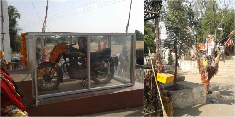 An accident occurred back in 1988, when Om Banna (Om Singh Rathore) was traveling on his motorcycle from the town of Bangdi to Chotila. He hit a tree and died, and his motorcycle fell into a ditch. The local police took the motorcycle and brought it to the police station, but the next morning the motorcycle wasn’t where they left it. They eventually found it… in the same ditch from where they collected it the first time. So they took it back to the police station and this time, for fear of it being stolen again, they emptied the motorcycle of fuel and locked it up.