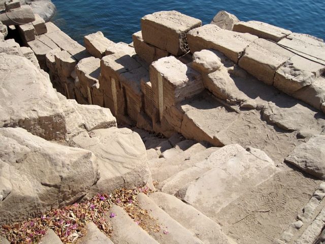 Another historically important nilometer lies on the island of Elephantine in Aswan, which consist of a flight of stairs leading down into the water, with depth markings along the walls. This location was also particularly important, since, for much of Egyptian history, Elephantine marked Egypt’s southern border and was, therefore, the first place where the onset of the annual flood was detected.