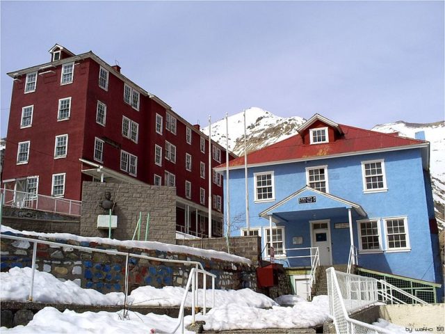 Today the mine itself still operates but the town was abandoned in the 1970s and some of the buildings were demolished. Demolition was halted at the end of the 1980s and the remaining buildings were remodeled to house contractors.