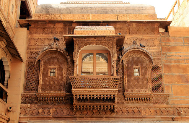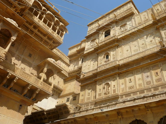 Also within it are many beautiful havelis (a generic term used for a traditional townhouse and mansions in India, Pakistan, Nepal, and Bangladesh) and a group of Jain temples of Rajasthan dating from the 12th to the 15th centuries. Some havelis have many floors and countless rooms, with decorated windows, archways, doors, and balconies. Some of them are now museums but most in Jaisalmer are still lived in by the families that built them.