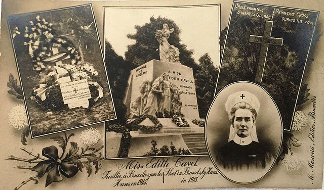 When WWI started she returned to the hospital in Brussels. On the 4th of August, the Germans invaded Belgium, and Cavell chose to remain at her post, tending to German soldiers and Belgians alike. There were posters all over occupied Brussels warning that “Any male or female who hides an English or French soldier in his house shall be severely punished”. Edith’s strong sense compassion and humanity led her to ignore warnings and she helped some 200 Allied soldiers to escape from German-occupied Belgium.