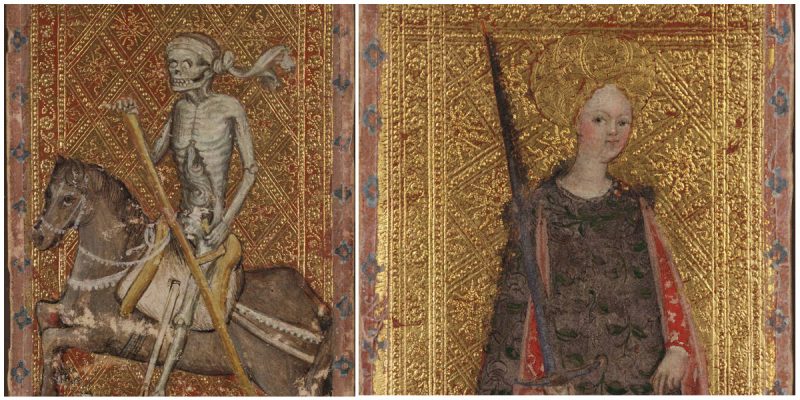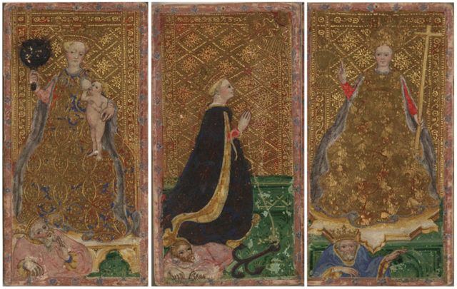 The Visconti-Sforza tarot is used collectively to refer to incomplete sets of approximately 15 decks from the middle of the 15th century. The cards are hand painted and appear to have been made for Francesco Sforza about the time that he became Duke of Milan in 1450. They are the oldest surviving tarot cards and date back to a period when tarot was still called Trifoni – 15th-century playing cards with allegorical content related to those used in tarocchi games. They were not made for divination or mystical goals, but for simple gambling.