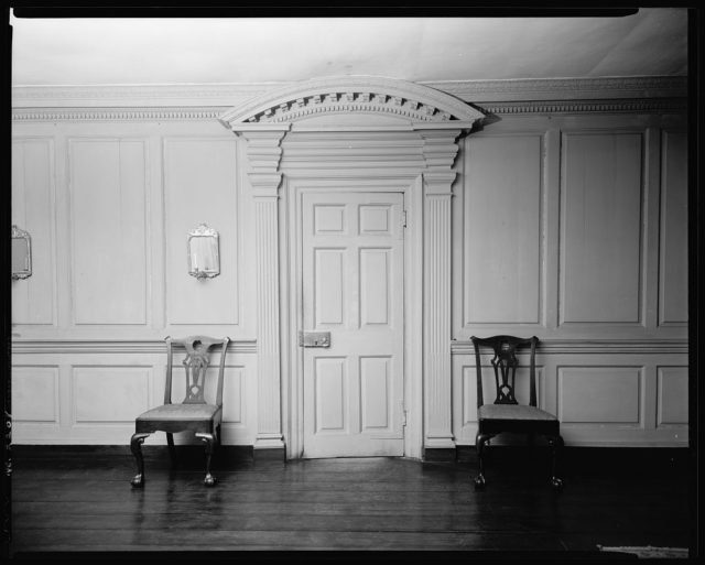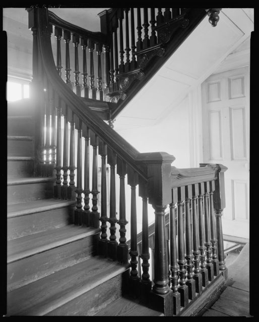 The interior of the house has an elegant finishing. The central staircase has some beautiful carved floral decorations and moldings, and the doors leading to the two largest rooms are topped by carved pediments. The cupola can be reached from the attic by a spiral staircase that is framed with sheathing that makes it looks like a large barrel.