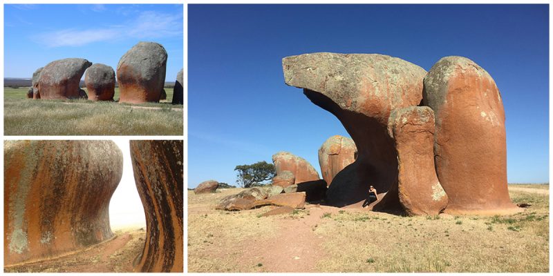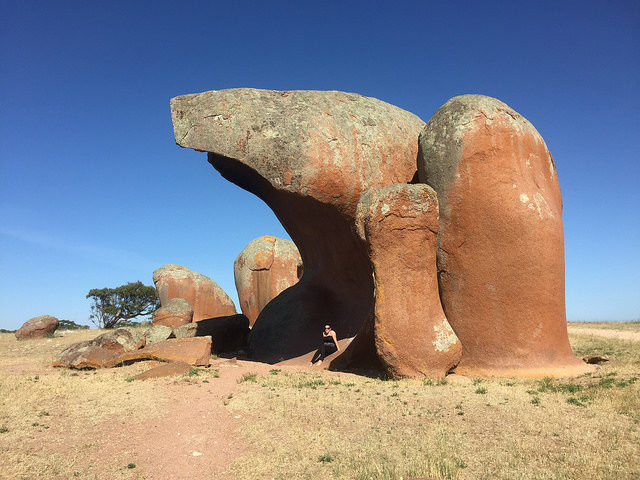 Located at Mortana, between Streaky Bay and Port Kenny on the Eyre Peninsula, South Australia, Murphy’s Haystacks are a group of ancient, wind-worn pink granite boulders that were formed 1,500 million years ago.