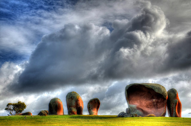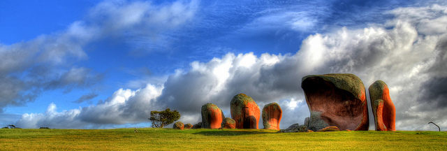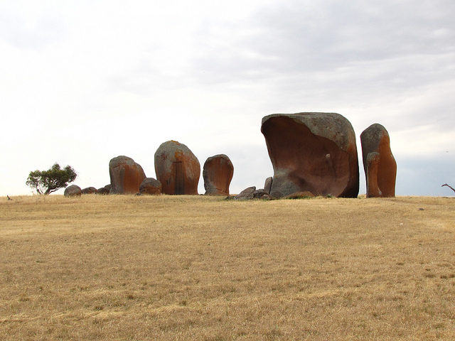 The process that created Murphy’s Haystacks began some 1,500 million years ago when boiling magma filled crevices below the earth’s surface and then cooled, laying down a granite base. The present formations were formed 100,000 years ago. The granite hills of the district, including the haystacks, were buried by calcareous dune sand. About 34,000 years ago they were uncovered by severe erosion, which exposed them in their present state as pillars or boulders, giving them fantastic shapes. Amazingly these beautiful pink granites were formed at a depth of 7 to 10 kilometres below the earth’s surface.