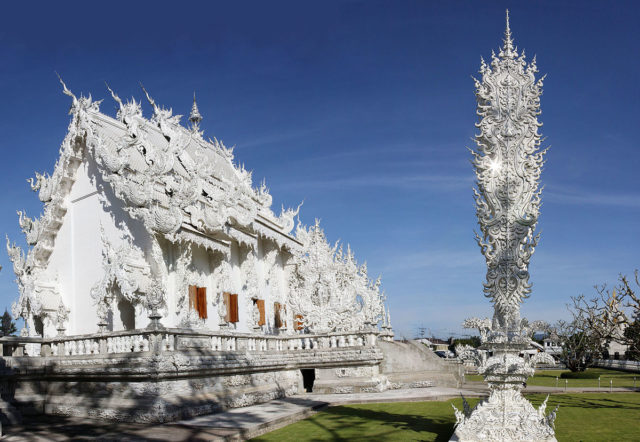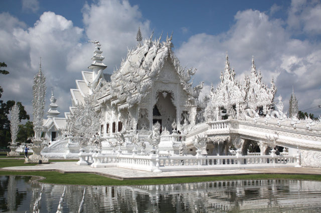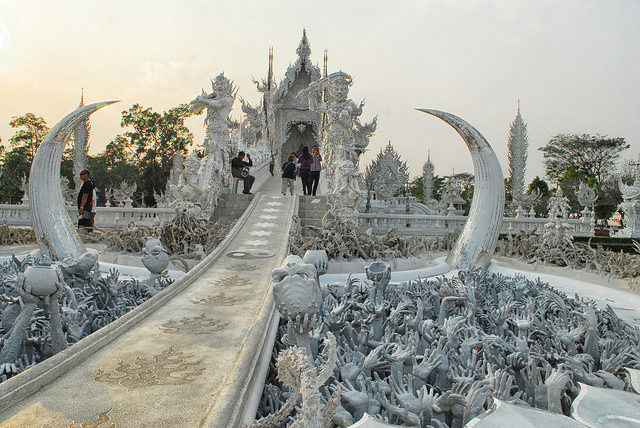 Wat Rong Khun, perhaps better known to foreigners as the White Temple, is an unconventional, contemporary Buddhist temple in Chiang Rai. This bizarre-looking white temple is owned by Chiang Rai-born visual artist Chalermchai Kositpipat, who designed it. The temple opened to visitors in 1997.