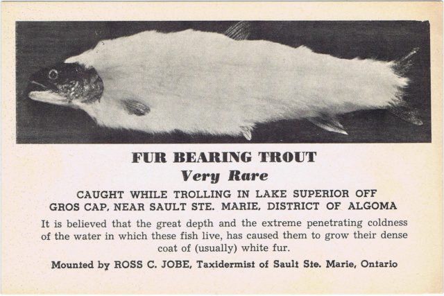 In a 1929 issue of Montana Wildlife magazine, J.H. Hicken says that when a furry trout is caught, “the change of temperature from this water to the atmosphere is so great that the fish explodes upon being taken from the water, and fur and skin come off in one perfect piece, making it available for commercial purposes.”