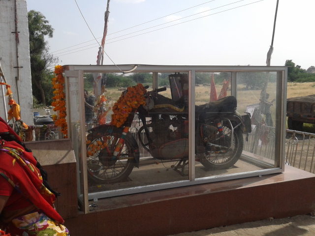 An accident occurred back in 1988, when Om Banna (Om Singh Rathore) was traveling on his motorcycle from the town of Bangdi to Chotila. He hit a tree and died, and his motorcycle fell into a ditch. The local police took the motorcycle and brought it to the police station, but the next morning the motorcycle wasn’t where they left it. They eventually found it… in the same ditch from where they collected it the first time. So they took it back to the police station and this time, for fear of it being stolen again, they emptied the motorcycle of fuel and locked it up.