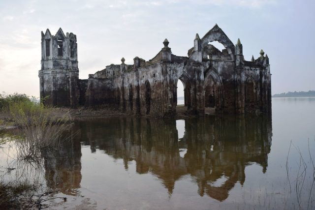 It has been 200 years since the church was built and more than 25 years since dam waters started flooding and submerging the church, the walls still stand there with such understated charm.