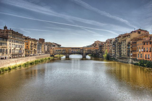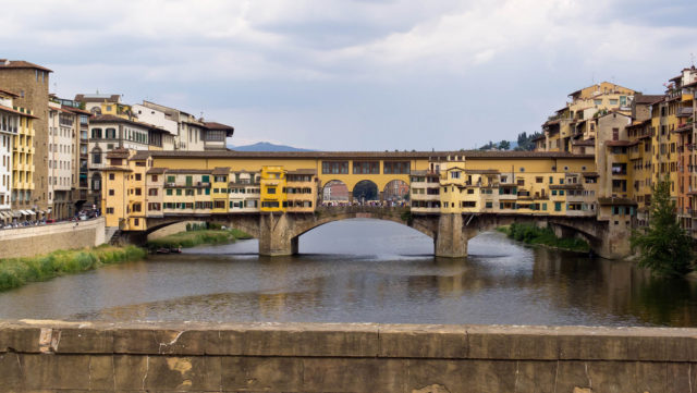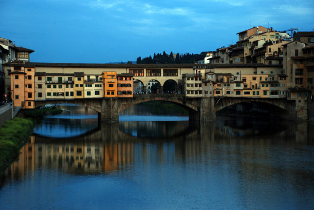 The current bridge was finished by 1350, built after a catastrophic flood in 1333 carried away its predecessor. Who built the bridge remains a mystery; the most frequently cited is Taddeo Gaddi, a painter who was Giotto’s godson.