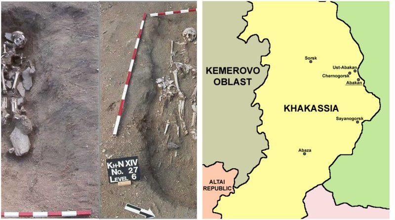 Another find is a stone slab with an uncommon picture of a bull with a long rectangular body. These are not known to be common in southern Siberia, yet are known in the region of modern Kazakhstan. Archaeologists now see this as an indication that the Okunev people might have moved to Khassia from the south.