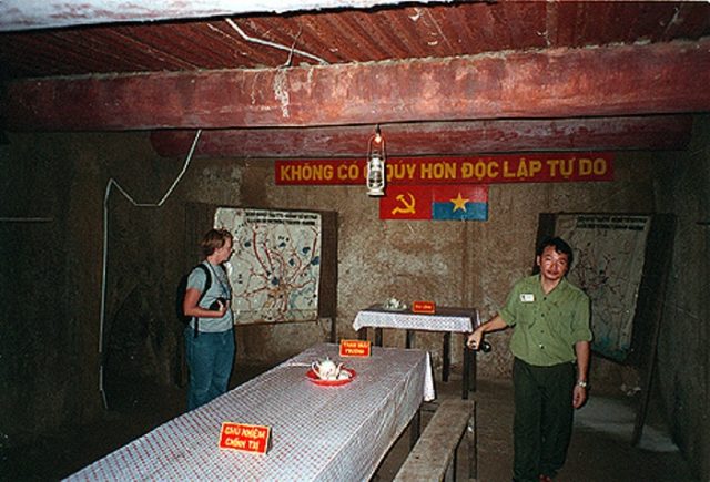 The tunnels were used by Viet Cong guerrillas as hiding spots during combat, as well as serving as communication and supply routes, hospitals, weapon caches, and food and living quarters for numerous North Vietnamese fighters.