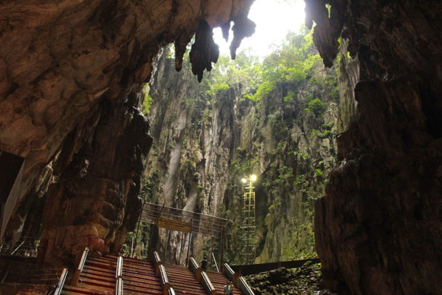 There are four main attractions at the Batu Caves: The Temple Cave, Dark Cave, Cave Villa and Ramayana Cave. The Temple Cave is the biggest and it’s also called the Cathedral Cave. It has a very high ceiling and features ornate Hindu shrines. Half way up the flight of stairs is the entrance to the second main attraction, the Dark Cave. In this cave, people can learn about the area’s natural history.