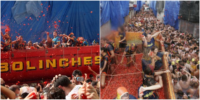 Thousands upon thousands of people make their way from all corners of the world to fight on the streets of Bunol. La fiesta de la Tomatina or tomato party takes places once a year in the town of Bunol, Spain since 1945.