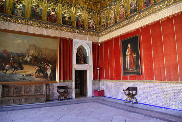 There are a lot of notable room in the castle with many works of art representing Spanish Kings and Queens. Sala de Ajimeces has gorgeous, Romanesque, mullioned windows. The Fireplace Room is known for its furniture, which dates back to the 16th century.