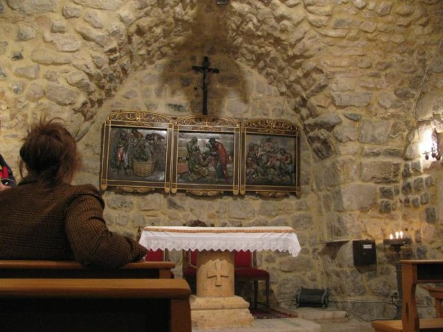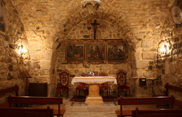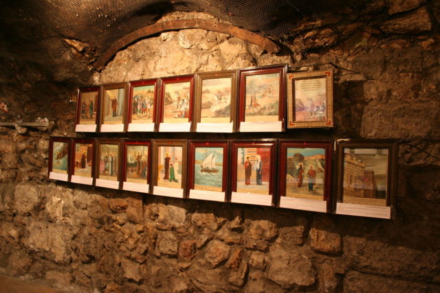 A simple structure consisting of two small rooms with bare stone walls, it houses only an altar, some icons, and a few pews. Along the main wall are some icons depicting the story of Paul the Apostle’s Damascene conversion.