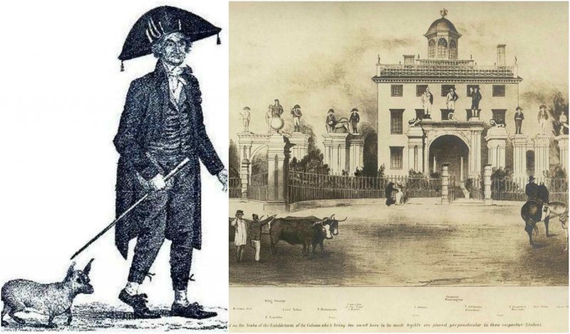 But as much as he tried to be a success in his endeavors, people still found his presence appalling and viewed him as a distasteful buffoon. He bought a massive estate in Newburyport and raised a lavish chateau with a clear view over the sea and decorated it in a tasteless manner with 40 and more statues erected in the front yard including one of himself under which it was written: “I am the first in the East, the first in the West, and the greatest philosopher in the Western world.” This coming from a man who also raised a statue of Thomas Jefferson alongside his, with “Constitution of Independence” engraved underneath.