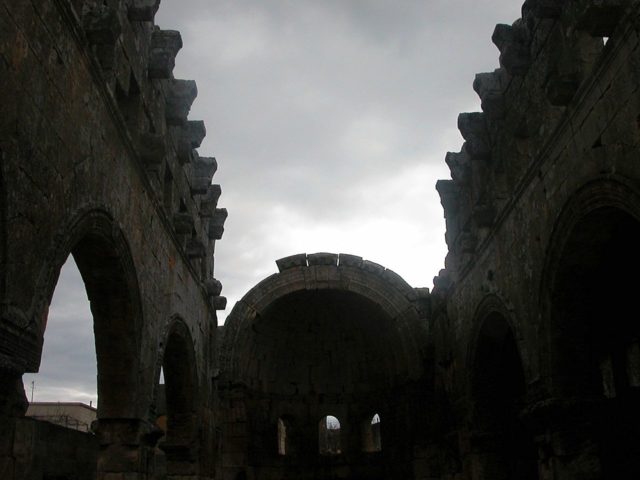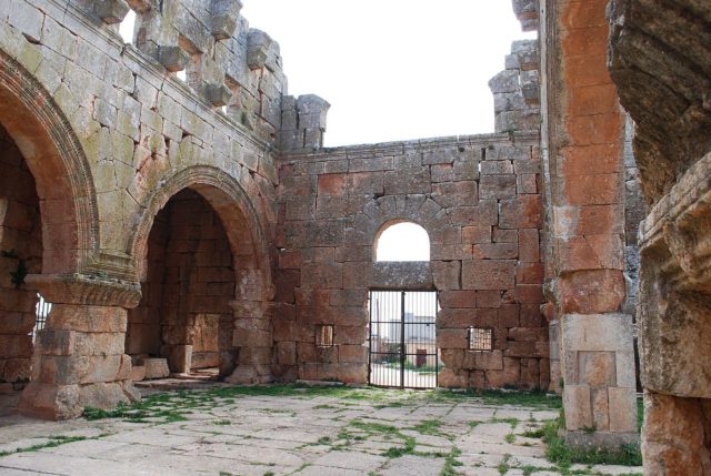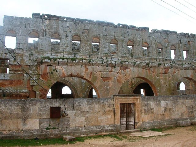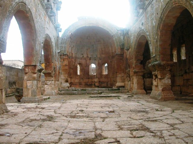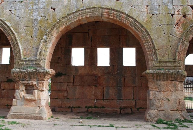 Typologically, the church belongs to a special Syrian derivation of the standard-basilica, the so-called Weitarkadenbasilika, where the columns that in traditional Byzantine church architecture separate the aisles from the nave have been replaced with low piers and soaring arches that create the feeling of expanded space.