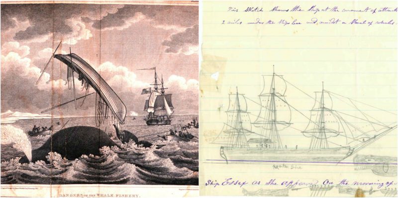 On the side of the Essex, Chase’s whaleboat was harpooning a whale. Yet its tail struck the boat which opened up a seam. This forced the crew to cut the harpoon line and return to the Essex for repairs.
