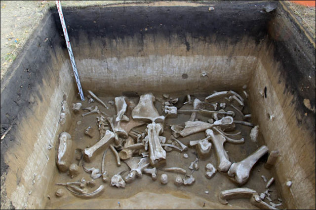 The depth of the layer that contained the bones was 1.5 meters (4.9 ft). The archaeologists chose to check a new place that was located in the middle of the village. Locals had discovered these bones while digging trenches for water pipes and cellars.
