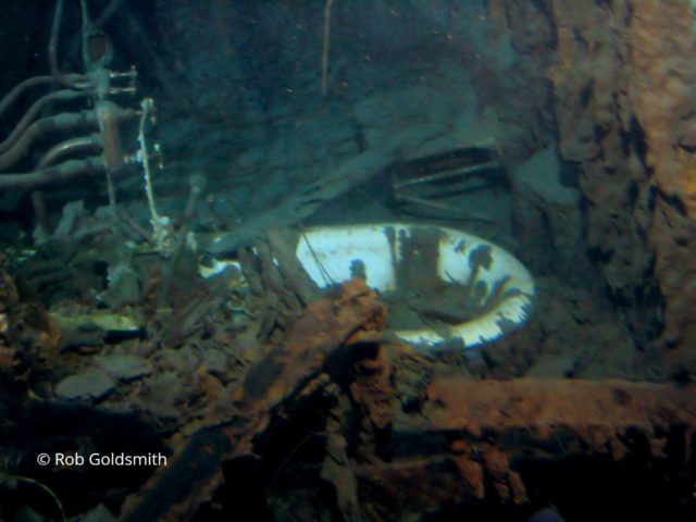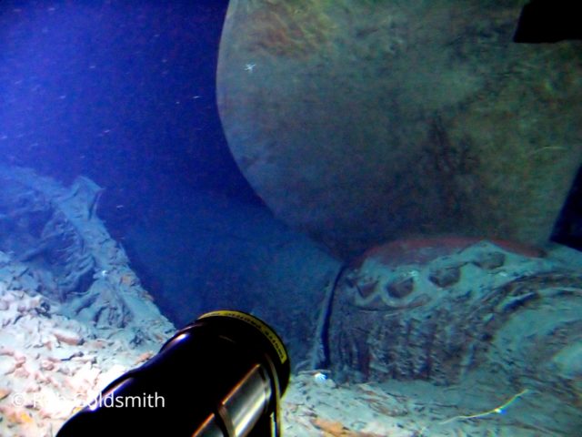 We carefully move across the mangled decks of the stern and dropped down alongside the massive engines, each standing nearly four stories high. They stand upright at the front of the stern, at the breaking point, almost like a gateway to the ship. It was here we decided to hold a minute’s silence in remembrance of those who perished. Although I was tremendously excited by the whole journey, it was at this point I felt a sense of guilt for being excited. This was a gravesite after all, and it should be treated as such.