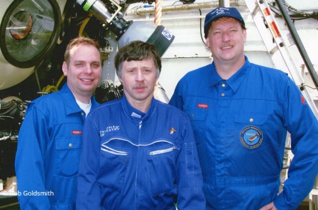 We set sail on the afternoon of the 7th we arrived at the wreck site the evening of the 8th. Once we were at the location of the Titanic the Keldysh would circle Titanic and drop a transponder near her four corners. This was done to make sure the Keldysh would hold her position and to unsure the Mir submersibles didn’t get lost on the way down. The transponders were effectively a safety net for both the Keldysh and the Mirs.