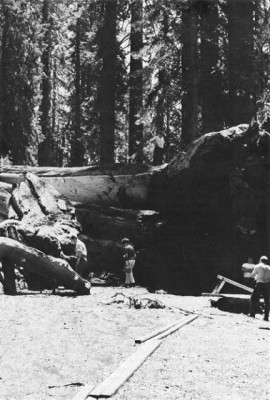 Under a heavy load of snow on its crown, the Wawona Tree collapsed in 1969.