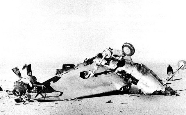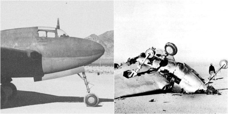 After several flights, the first XP-56 was destroyed on October 8th, 1943 during a high-speed taxi across the Muroc Dry Lake, when a tire on the left gear blew out.
