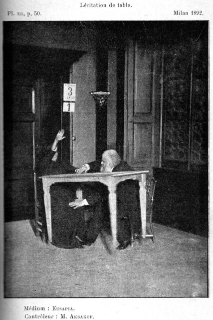 But the Harvard psychologist Hugo Münsterberg wasn’t convinced in Palladino’s supernatural abilities at all. At one point his man hid under the table and later reported that Palladino moved the table with her foot.