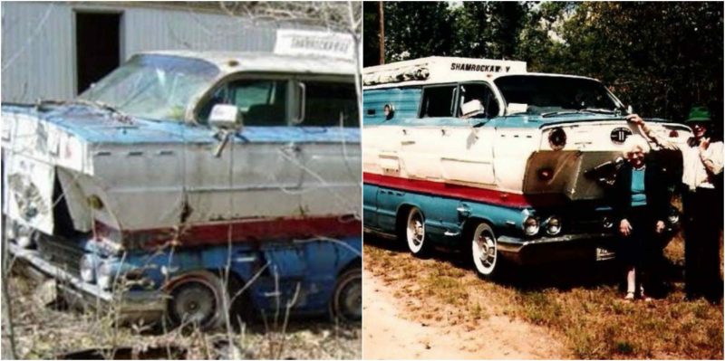 One amazing feature on the ShamRockAway was an especially designed steering gear box that allowed all of the four front wheels to turn, providing perfect control on the road. The steering of the vehicle was power steering, it had air shocks on the drive wheels, equal curb weight on each wheel, power plant from McGuire’s favourite Electra 225 Buick, Dynaflow transmission, 401 cubic inch displacement v8 engine, two gas tanks, eight wheels, two heaters, solid frames, weight 9960 lbs, two air conditioners, and a double core radiator.