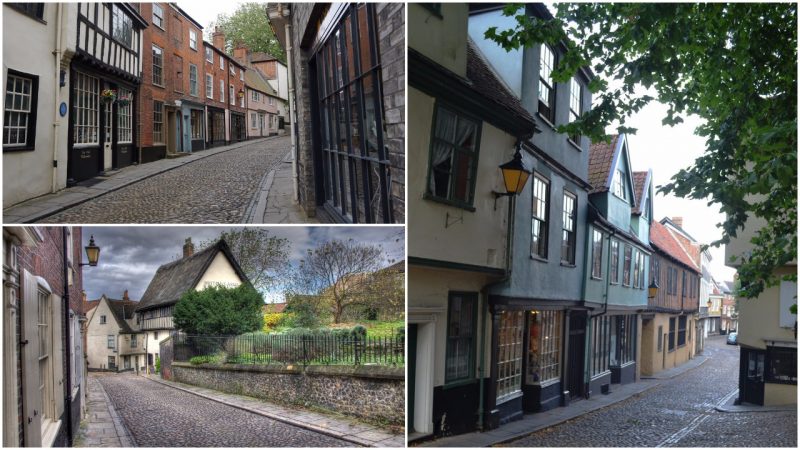 Every visitor of the small town Norwich in East Anglia mustn’t miss Elm Hill, the most significant and historic street in the city that offers the doorway of Norwich history.