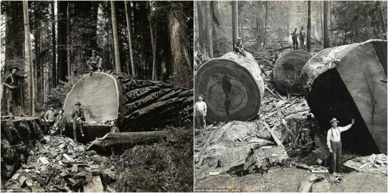 A famous series of photographs came out during 1915, depicting a number of lumberjacks working on the giant redwoods of Humboldt County, California. This was the time when tree logging was at its peak.