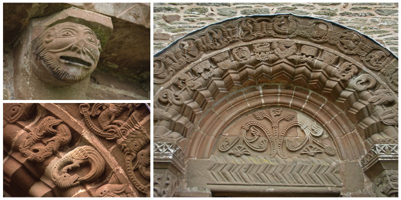 Amongst students of church architecture, few churches are as well-known as Kilpeck and famous for the dozens of amusing, intricate, grotesque, and remarkably preserved carvings around the doors, windows, and roof line of the church, left by the 11th-century masons.