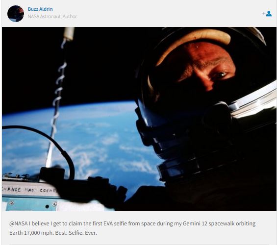 The selfie that he took in space became extremely popular and well known before anyone else was taking selfies, and before there were any social media platforms share them on.