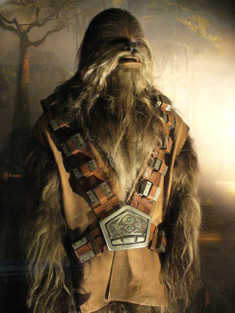 That is because the character of Chewbacca was based on another hairy creature. A tall Alaskan Malamute named Indiana was George Lucas’ dog at the time and the muse for the creation of the gentle Wookie.