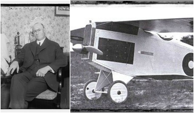 Dr. Christmas claimed to be one of the first airplane pilots and said that he had made his first flight in March 1908 in his custom designed plane, but burned the aircraft in order to protect his design secrets. This has never been confirmed but he surely patented, built and flew a biplane of his own design in 1909. It was known as the Red Bird.