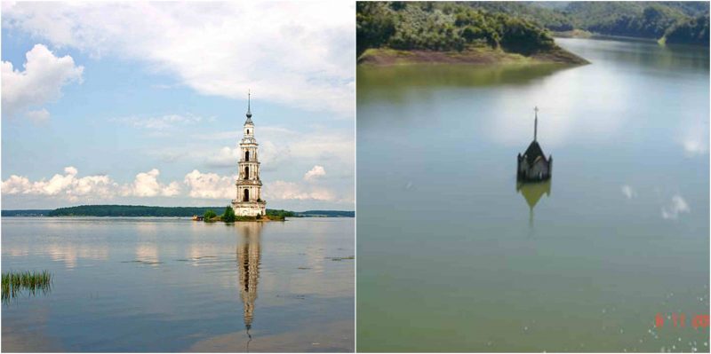 Some of these medieval structures have stood the test of time and human intervention, as the once beautiful landmarks can still be seen standing above the surface of the water. This is a truly amazing sight to behold as the top of the submerged building yields a new form of beauty.
