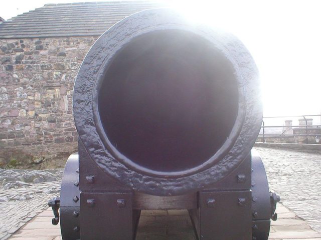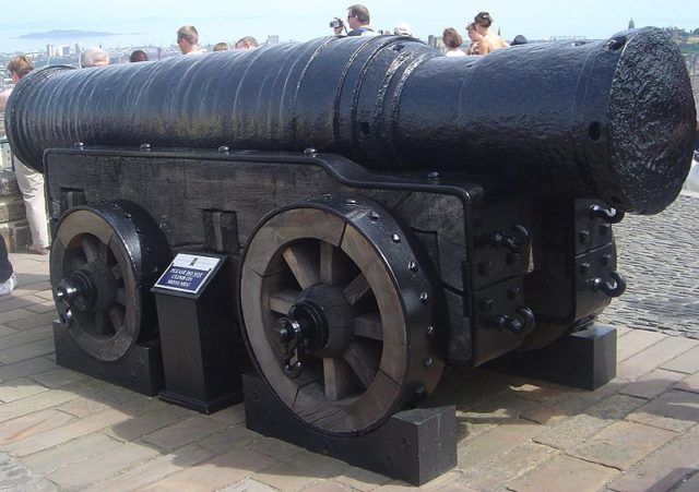 The six-ton muzzle-loaded cannon is capable of firing gunstones weighing 150kg a distance of nearly two miles. James IV used the weapon to besiege Dumbarton Castle, then held by the rebellious Earl of Lennox in 1489, and to attack Norham Castle in northern England.