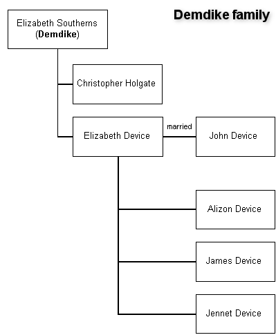Six of the accused witches were from two rival families – the Demdike family and the Chattox family, both headed by old, poverty stricken widows – Elizabeth Southerns (aka “Old Demdike”) and Anne Whittle (“Mother Chattox”).