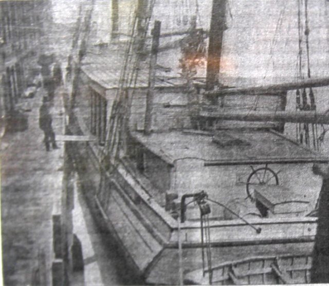 The Simmons exchanged hands several times before it was purchased by Captain Herman Schuenemann in 1910. Along with his brother August, they’ve been trading Christmas trees in Chicago since around the start of the 20th century. He sold trees directly to Chicago residents at the dockside of Clark Street Bridge.6 The children of Chicago called him “Captain Santa” because of the slogan that he used to sell the trees. The slogan was “Christmas Tree Ship: My prices are the lowest” with electric Christmas lights and a tree atop the main mast. Schuenemann sold the trees for between 50 cents and $1 and sometimes he gave away some of the trees to needy families.