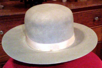 His new creation, The Boss of the Plains, was waterproof, wth a high crown and a wide stiff brim. The high crown keeps the top of the head well insulated from the sun effects while the brim protects the face, neck, and shoulders from sun and rain. The underside of the hat was equipped with a sweatband and lining. The early models of the hat had a natural color.