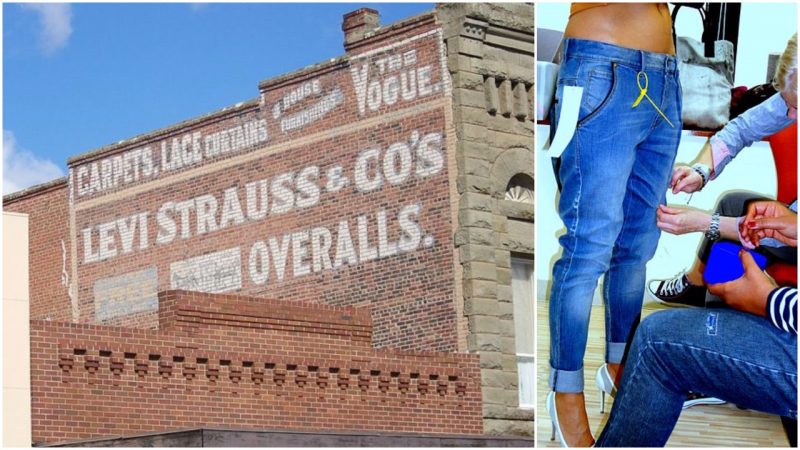 Levi Strauss & Co were the first to make blue jeans in 1873. They were made out denim that was woven at the Amoskeag Manufacturing Company located in Manchester, New Hampshire. Back in the day they did not have preshrunk fabrics, so the cotton denim was what we call today Shrink-to-Fitâ„¢. We all know that when cotton is in water it shrinks and does not go back to the original size.