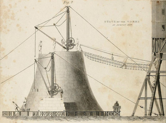 The construction of the Bell Rock Lighthouse began in 1807, headed by Stevenson and 20 other men who worked 20 hours per day. They were exposed to numerous dangers during the construction of the lighthouse. By 1810 the construction was slowed down due to various factors, and Robert lost his twins and the youngest daughter who died of whooping cough. The lighthouse was finished the following year when it was lit for the first time.