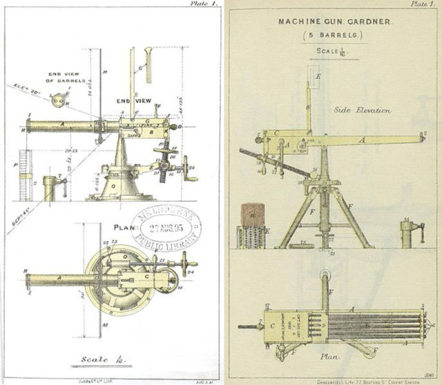 W. Gardner soon came up with his own design of a machine gun in 1874 and made a hand-made prototype, but being unable to finance production he sold the manufacturing rights to the newly formed company of Pratt & Whitney, Hartford, Connecticut and in less than a year they produced a military version of the weapon.