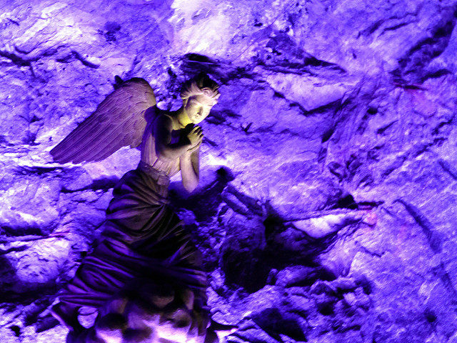 There is a temple at the bottom that has three sections, representing the birth, life, and death of Jesus. The icons, ornaments, and architectural details are hard carved in the halite rock, and some marble sculptures are also included.
