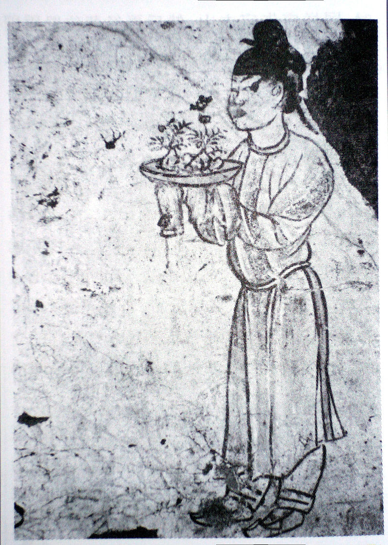 There are the tomb paintings from 706 AD discovered in 1972 for Crown Prince Zhang Huai. They show servants carrying plants resembling bonsai.