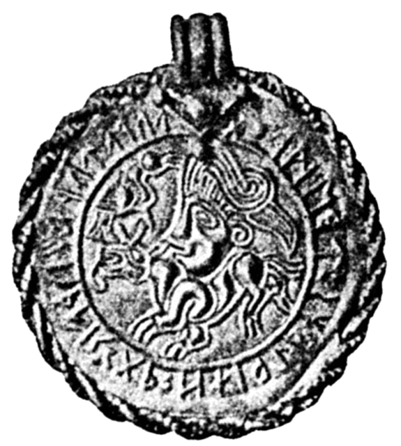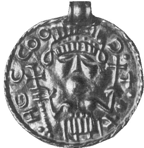 A Bracteate (from the Latin bractea, a thin piece of metal) is a thin single-sided gold medal with a stamped or repoussé decoration based on ancient Roman and Byzantine coins.