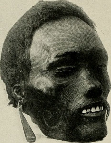 The preserved heads of the indigenous people of New Zealand, with faces decorated by tā moko tattooing (a traditional art form practiced by the Māoris), became valuable trade items during the Musket Wars of the early 19th century.